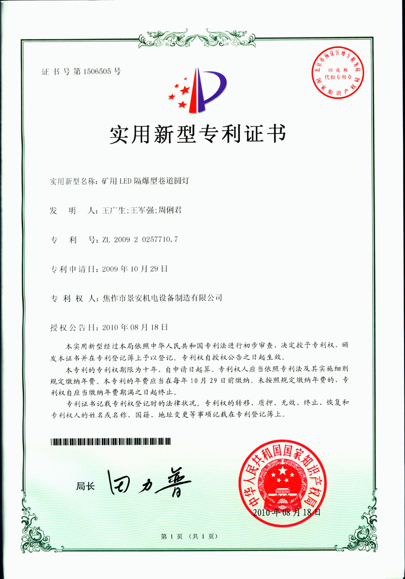焦作景安公司始終堅(jiān)持“以科技為先導(dǎo),以市場為導(dǎo)向”的發(fā)展戰(zhàn)略,不斷進(jìn)行新產(chǎn)品的研制和開發(fā),在國家“六五”到“九五”期間,承擔(dān)和參與了國家多項(xiàng)科技攻關(guān)項(xiàng)目,產(chǎn)品的技術(shù)和質(zhì)量一直處于全國同行業(yè)領(lǐng)先位置。并被中國電器工業(yè)協(xié)會評定為“質(zhì)量可信產(chǎn)品”。特別是在礦用防爆燈領(lǐng)域,礦用隔爆型半導(dǎo)體(LED)照明燈具,2008年列入國家火炬計(jì)劃,獲2009年河南省工業(yè)和信息化廳的科技成果二等獎,并擁有多項(xiàng)國家專利。 |